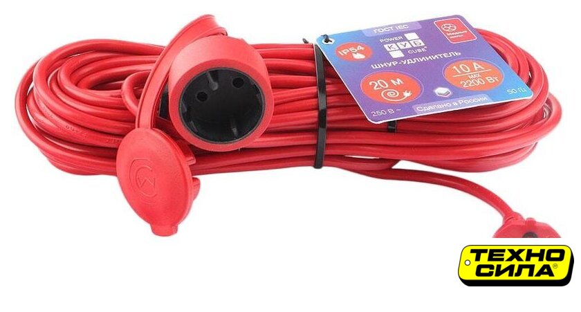 удлинитель, кабель 10 м, 1 розетка Schuko (евро без заземления) / 2200 Вт