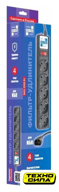 сетевой фильтр, 6 розеток евро с заземлением/евро без заземления / 2200 Вт