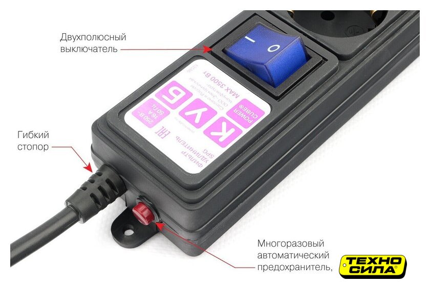 | Общее количество выходных розеток | 6 (5 с заземлением, 1 без заземления) |