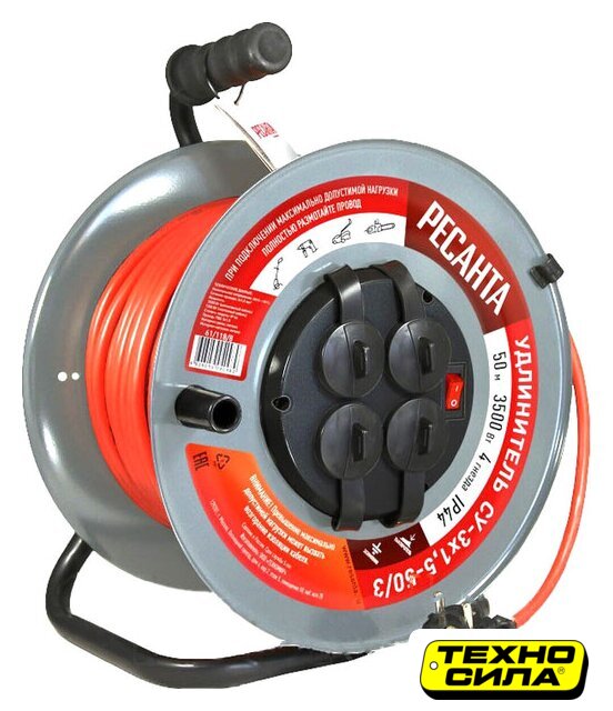 удлинитель, 50 м, 4 розетки евро с заземлением / 3500 Вт