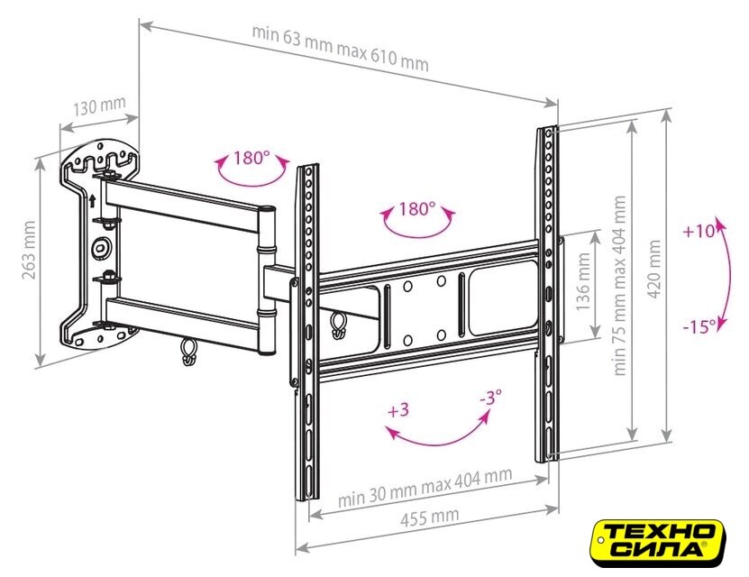 | Расстояние от стены (потолка) | 63 — 610 мм |