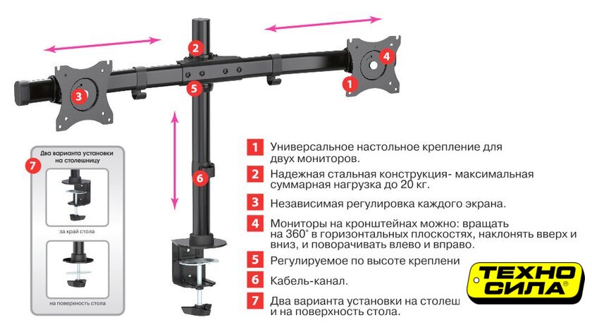для ЖК-телевизоров, 37-80", настенный, поворотный, наклон 20°, поворот 120°, цвет черный