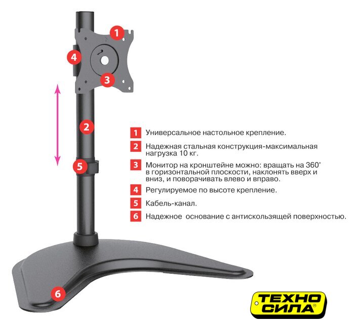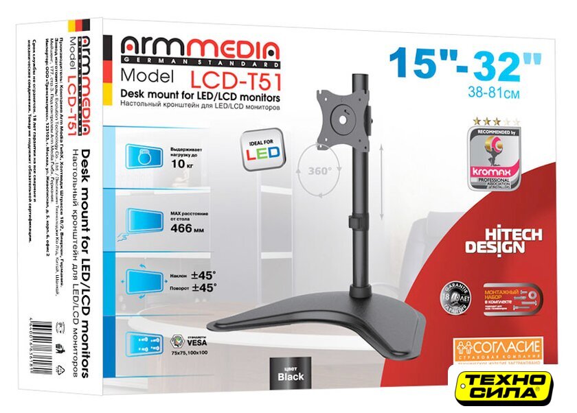 настенный кронштейн для ЖК-телевизора 30-65", наклон 12°, поворот 180°, цвет черный