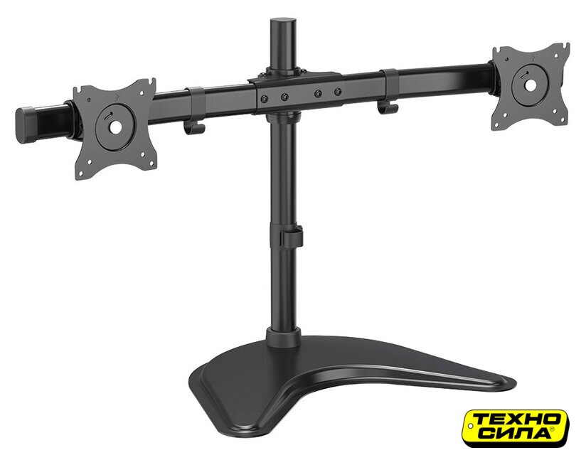для мониторов, 17-27", 2 монитора, настольный, поворотный, с регулировкой высоты, кабель-канал, струбцинное крепление, наклон 80°, поворот 90°, регулировка высоты 0-400 мм, цвет черный