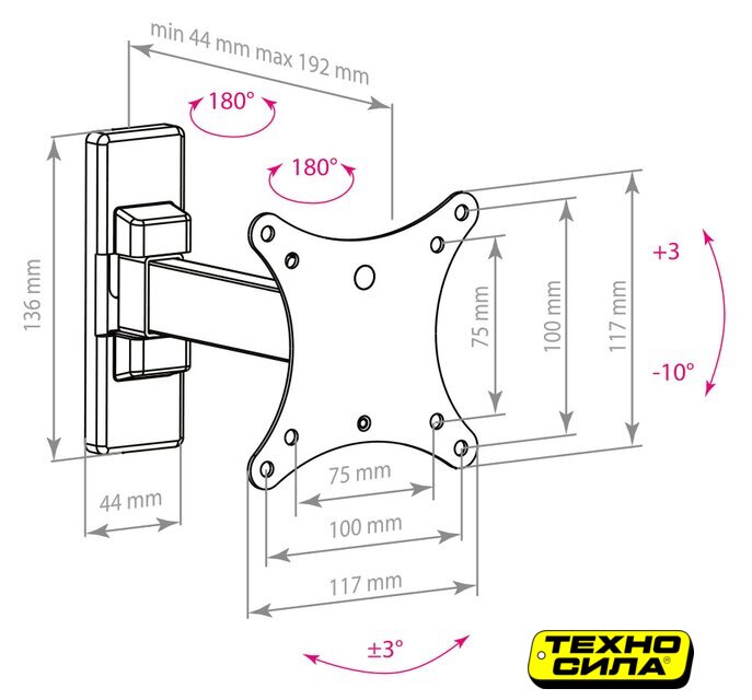 | Расстояние от стены (потолка) | 44 — 192 мм |