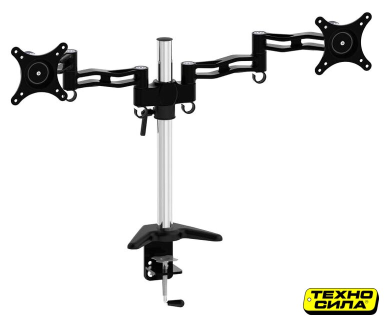 для мониторов, 17-27", 2 монитора, настольный, поворотный, с регулировкой высоты, кабель-канал, наклон 90°, поворот 80°, регулировка высоты 245-400 мм, цвет черный