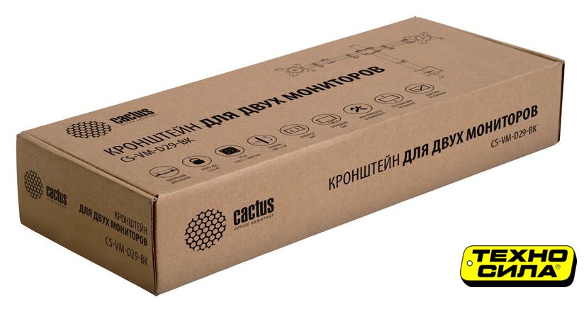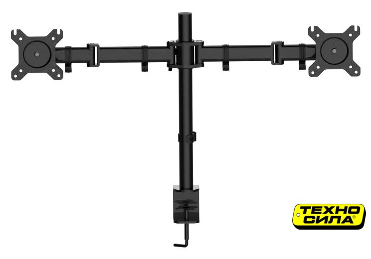 для мониторов, 17-32", 2 монитора, настольный, поворотный, кабель-канал, струбцинное крепление, наклон 90°, поворот 180°, цвет черный
