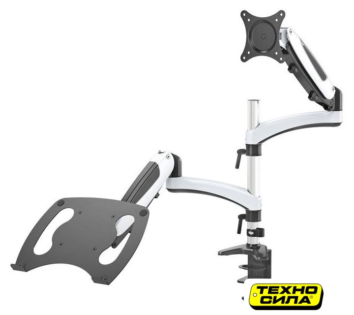 для мониторов, 17-35", 1 монитор, настольный, поворотный, с регулировкой высоты, кабель-канал, наклон 40°, поворот 180°, цвет белый