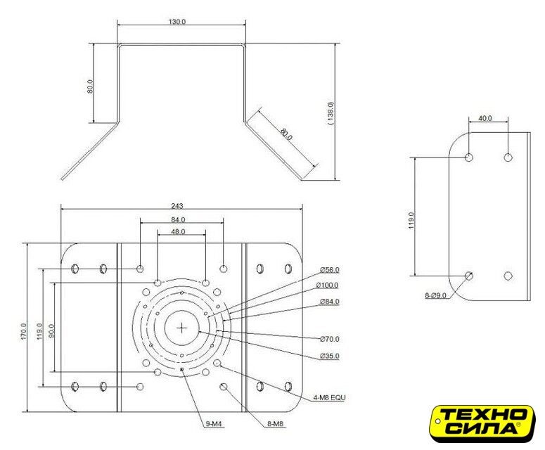 потолочный кронштейн для ЖК-телевизора 23-42", наклон 20°, поворот 90°, цвет черный