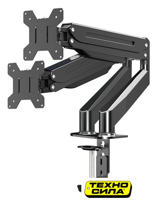 для мониторов, 13-34", 2 монитора, настольный, поворотный, с регулировкой высоты, кабель-канал, струбцинное крепление, наклон 45°, поворот 180°, цвет черный
