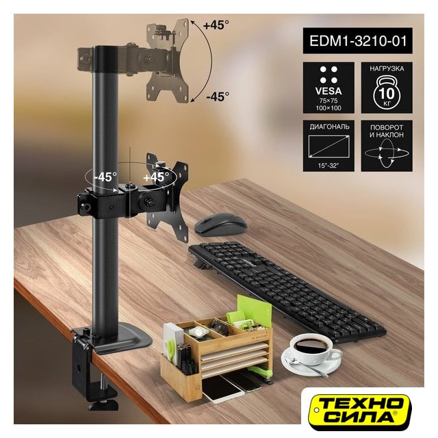 для ЖК-мониторов/для ЖК-телевизоров, 10-27", настенный, поворотный, наклон 12°, поворот 180°, цвет черный