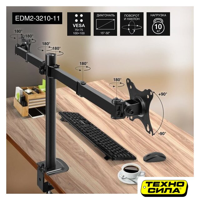 настенный кронштейн для ЖК-телевизора 15-42", наклон 10°, поворот 180°, цвет черный