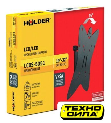 настенный кронштейн для ЖК-телевизора/для плазменного телевизора 19-32", наклон 25°, поворот 350°, цвет черный