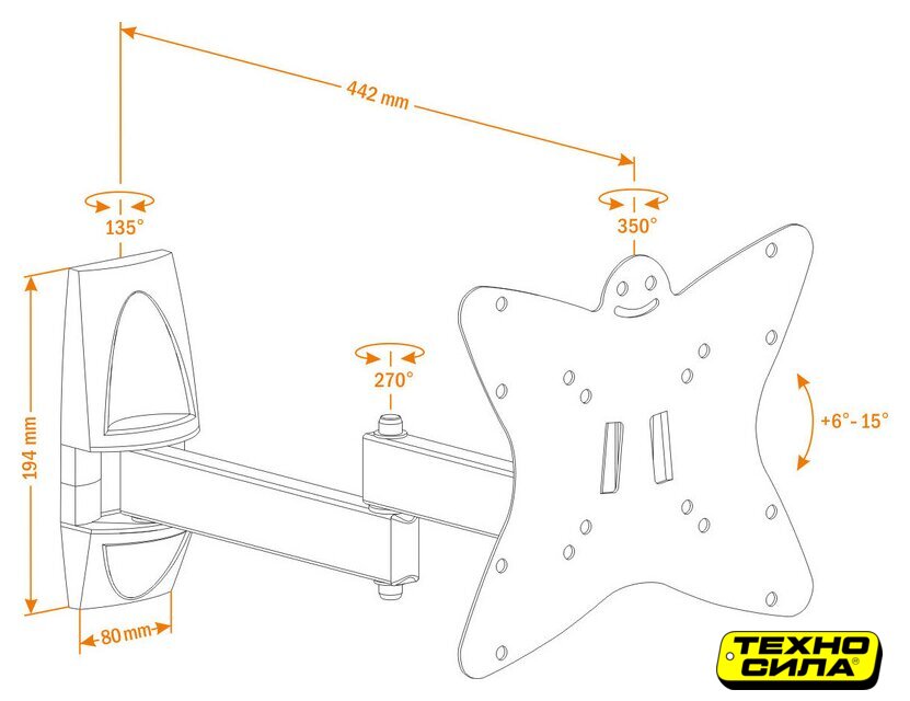настенный кронштейн для ЖК-телевизора 23-42", наклон 10°, поворот 90°, цвет черный