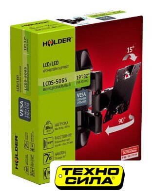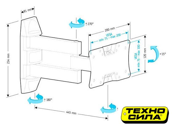 настенный кронштейн для ЖК-телевизора 13-27", наклон 20°, поворот 90°, цвет черный