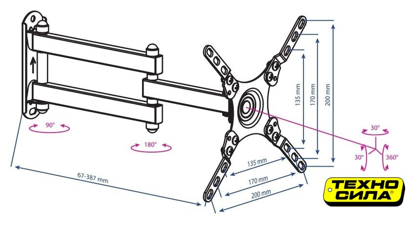 Расстояние от стены (потолка) | 67 — 387 мм |