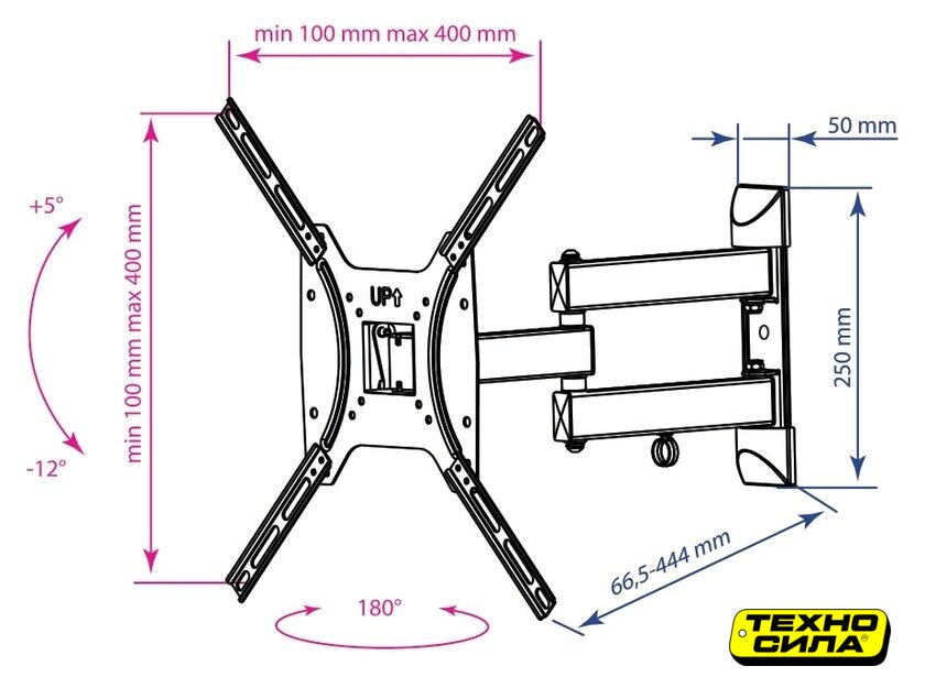 Расстояние от стены (потолка) | 66.5 — 444 мм |
