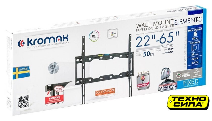 настенный кронштейн для ЖК-телевизора 32-55", наклон 10°, поворот 0°, цвет черный