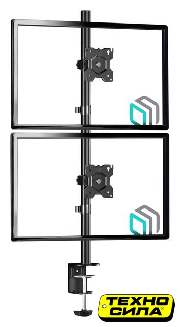 для мониторов, 17-27", 2 монитора, настольный, поворотный, с регулировкой высоты, кабель-канал, струбцинное крепление, наклон 80°, поворот 90°, регулировка высоты 0-400 мм, цвет черный