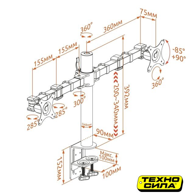 для ЖК-телевизоров, 32-75", настенный, наклон 10°, поворот 160°, цвет черный