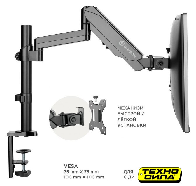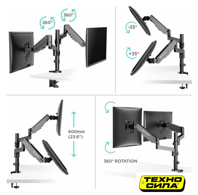 настольный кронштейн для ЖК-монитора 15-32", наклон 45°, поворот 360°, цвет черный