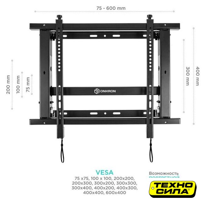 | Совместимость с креплением VESA | 75x75, 100x100, 200x200, 200x300, 300x200, 300x300, 300x400, 400x200, 400x300, 400x400, 600x400 |