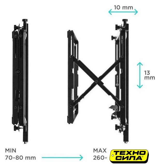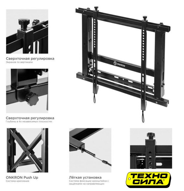 кронштейн для информационной панели, 45-70", настенный, с регулировкой высоты, наклон -3-3°, регулировка высоты 13 мм, цвет черный