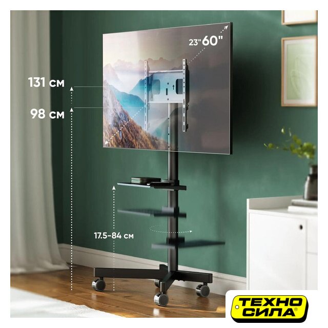 настенный кронштейн для ЖК-телевизора 26-60", наклон 15°, поворот 180°, цвет черный
