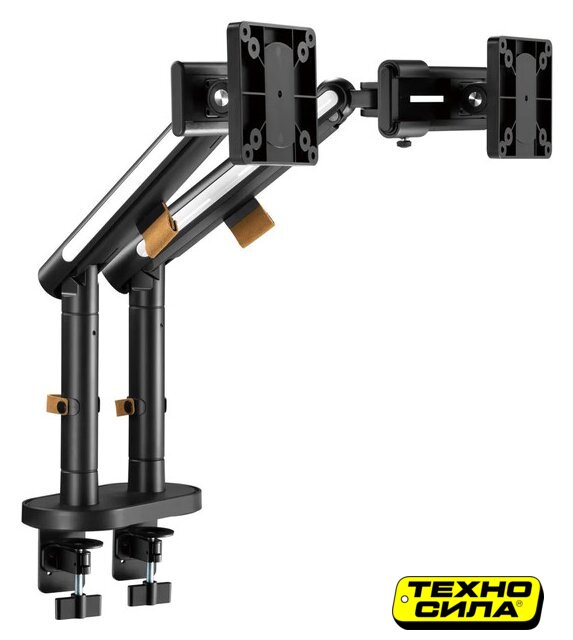 для мониторов, 17-35", 2 монитора, настольный, поворотный, с регулировкой высоты, кабель-канал, наклон 40°, поворот 90°, цвет серый