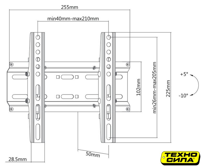 для ЖК-телевизоров, настенный, наклон 15°, цвет черный