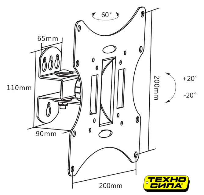 настенный кронштейн для ЖК-телевизора 13-27", наклон 15°, поворот 90°, цвет черный