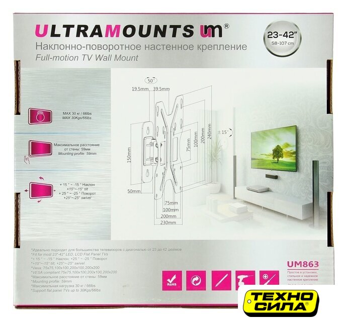 настенный кронштейн для ЖК-телевизора 22-65", цвет черный