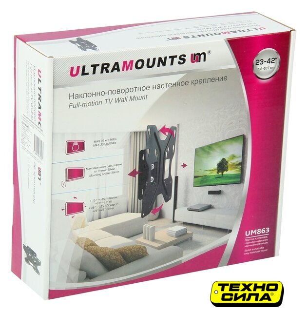 для ЖК-телевизоров, 23-56", настенный, поворотный, наклон 12°, поворот 180°, цвет черный