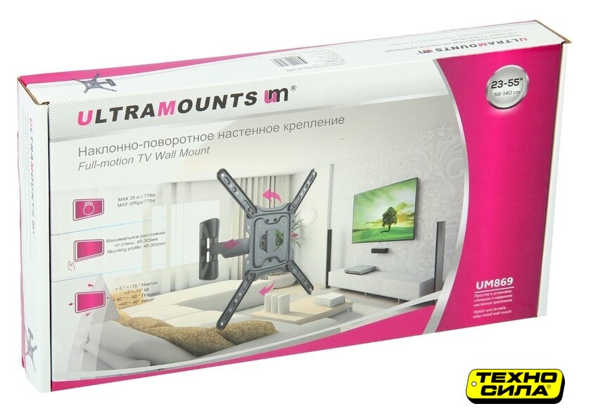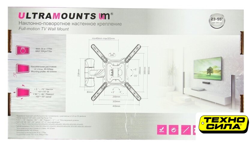 настенный кронштейн для ЖК-телевизора 37-55", наклон 0°, поворот 15°, цвет черный