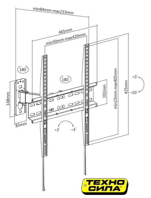 | Расстояние от стены (потолка) | 84 — 233 мм |