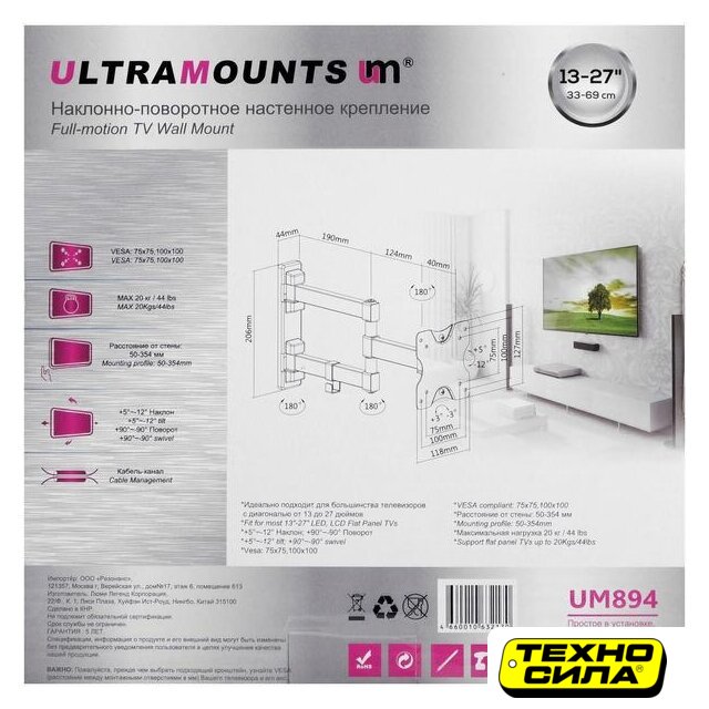 | Расстояние от стены (потолка) | 50 — 354 мм |