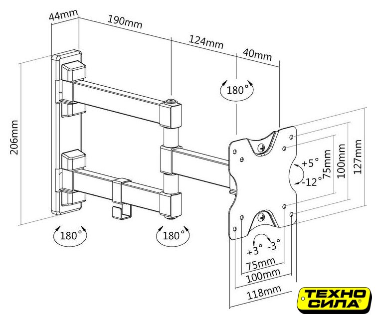 настенный кронштейн для ЖК-телевизора 22-42", наклон 12°, поворот 180°, цвет черный