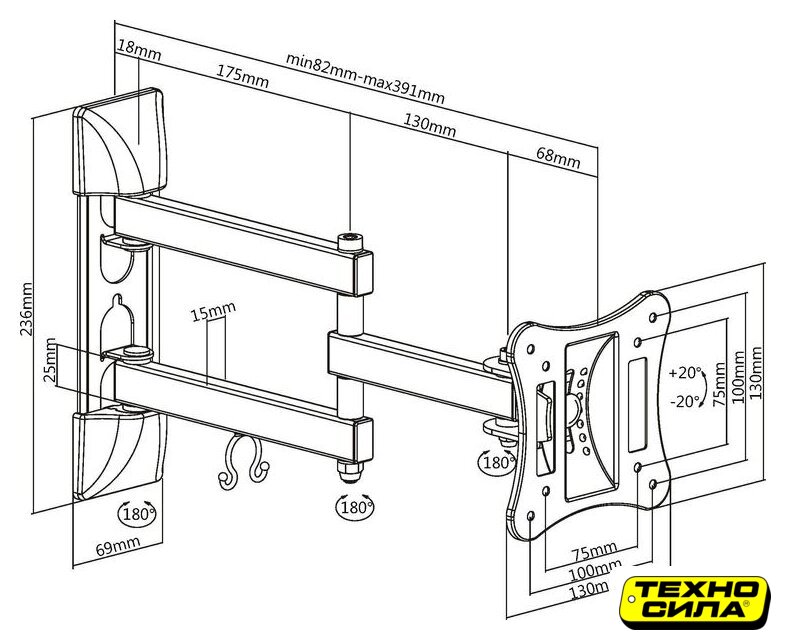 Расстояние от стены (потолка) | 82 — 391 мм |