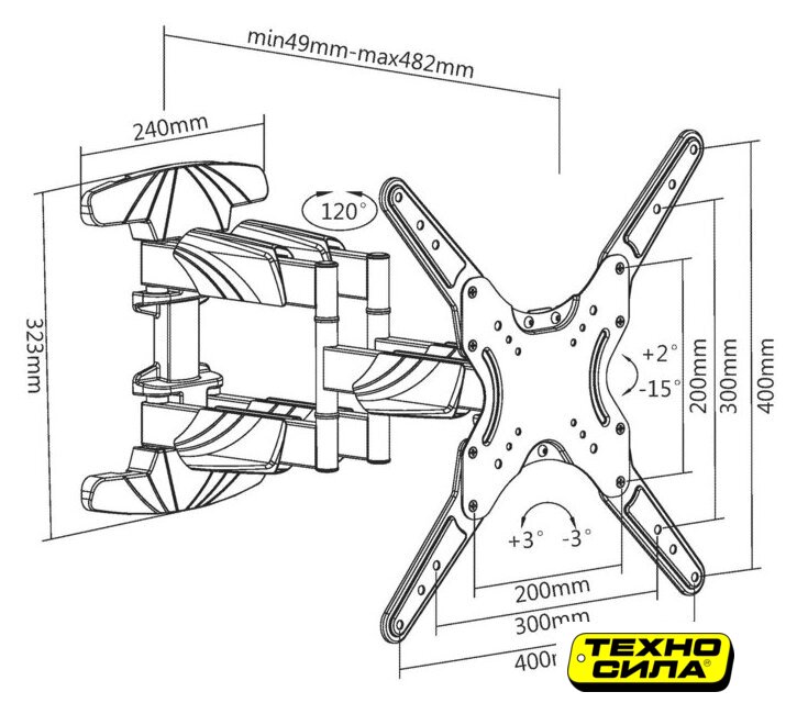 Расстояние от стены (потолка) | 49 — 482 мм |