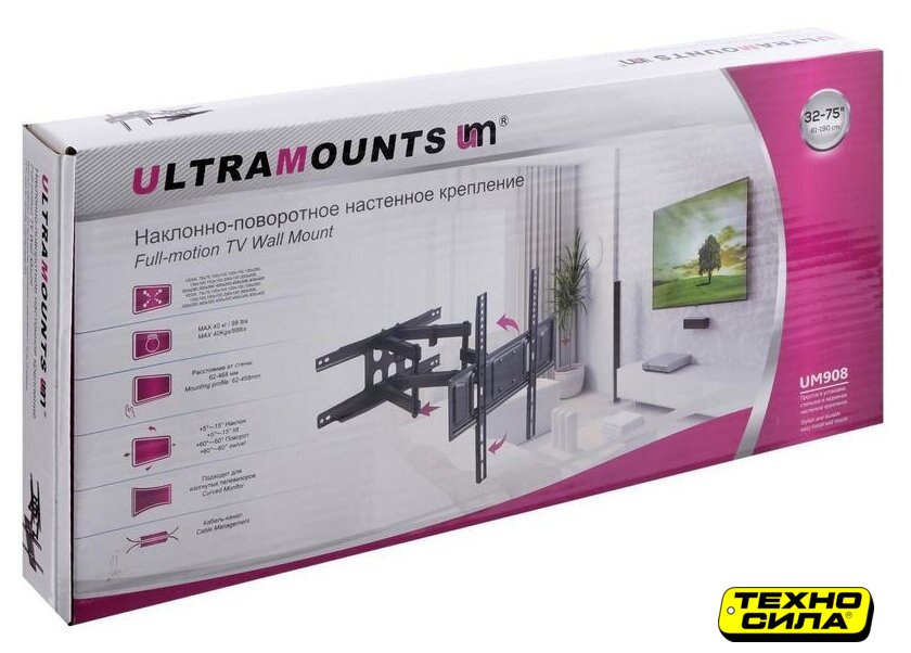 для ЖК-телевизоров, 37-80", настенный, поворотный, наклон 20°, поворот 120°, цвет черный