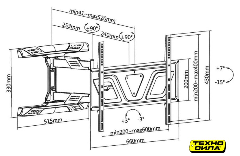 | Расстояние от стены (потолка) | 41 — 520 мм |
