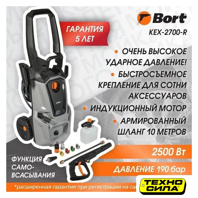 2500 Вт, 525 л/ч, максимальное рабочее давление: 130 Бар, максимальная температура на входе: 50 °C, длина шланга: 9 м