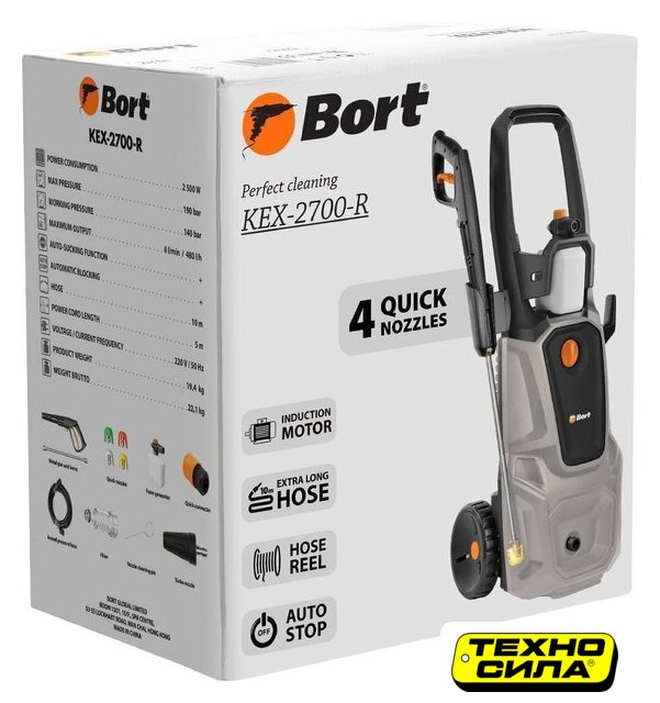 2500 Вт, 520 л/ч, максимальное рабочее давление: 130 Бар, максимальная температура на входе: 40 °C, длина шланга: 8 м