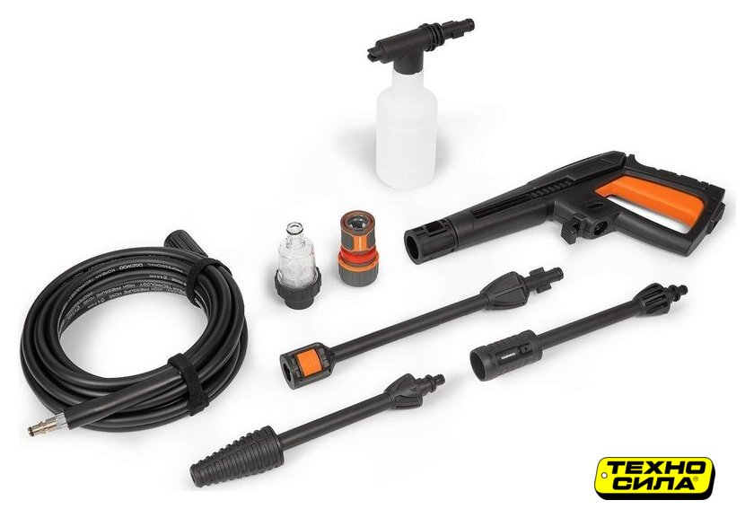 Комплектация | - Мойка высокого давления- Профессиональный пистолет - Шланг высокого давления- Насадка на пистолет распылительная- Грязевая фреза- Пеногенератор- Фильтр тонкой очистки- Быстросъёмный коннектор 1/2 с аквастопом- Держатель аксессуаров |