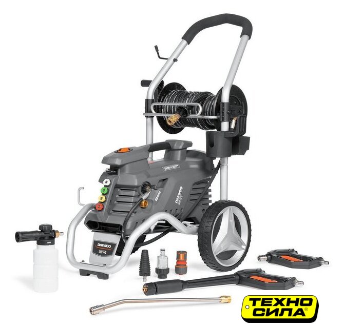 Комплектация | - Мойка высокого давления- Профессиональный пистолет с металлическим соплом- Сверхпрочный шланг 12 метров на барабане- Четыре быстросъемных насадок-форсунок- Грязевая фреза- Пеногенератор- Фильтр тонкой очистки- Быстросъёмный коннектор 1/2 с аквастопом- Игла для прочистки форсунки- Дополнительный, короткий пистолет с быстросъемным соединением |