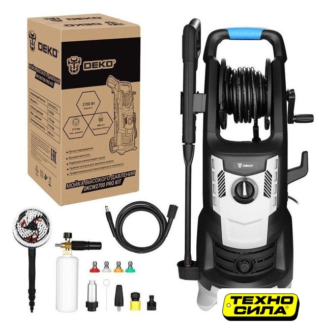 Комплектация | - Мойка - 1 шт.- Ручка - 1 шт.- Катушка для шланга - 1 шт.- Ручка катушки - 1 шт.- Колеса - 2 шт.- Боковые держатели катушки - 2 шт.- Держатель шнура питания - 1 шт.- Держатель емкости для моющего средства - 1 шт.- Держатель пистолета - 2 шт.- Высоконапорный пистолет - 1 шт.- Распылительная трубка - 1 шт.- Шланг высокого давления (шланг 10 м. установлен на катушку) - 2 шт.- Пенокомплект - 1 шт.- Фильтр - 1 шт.- Насадка-распылитель - 1 шт.- Вращающаяся насадка-щетка - 1 шт .- Форсунки - 4 шт.- Коннектор для подачи воды - 1 шт.- Быстроразъемное соединение - 1 шт .- Игла для прочистки распыляющего наконечника - 1 шт.- Крепежный комплект - 1 шт.- Руководство по эксплуатации- Коробка |