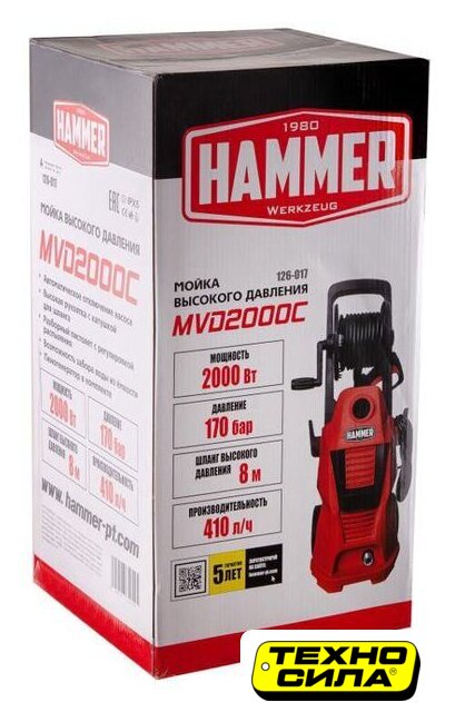 1900 Вт, 480 л/ч, максимальное рабочее давление: 150 Бар, максимальная температура на входе: 50 °C, длина шланга: 6 м