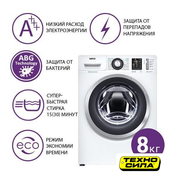 отдельностоящая, стиральная машина, с паром, загрузка до 7.5 кг, отжим 1200 об/мин, глубина 49 см, энергопотребление A+++, 15 программ