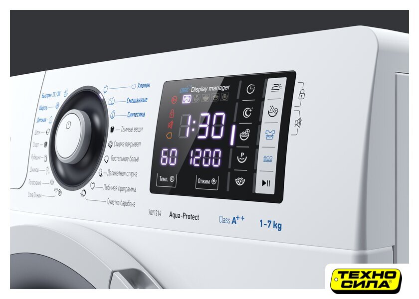 отдельностоящая, автоматическая стиральная машина, загрузка до 7 кг, отжим 1200 об/мин, глубина 48.2 см (с люком 56 см), энергопотребление A+++, 16 программ