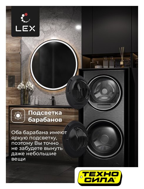 | Максимальная загрузка | 15 кг (верхний барабан – 5 кг, нижний барабан – 10 кг) |